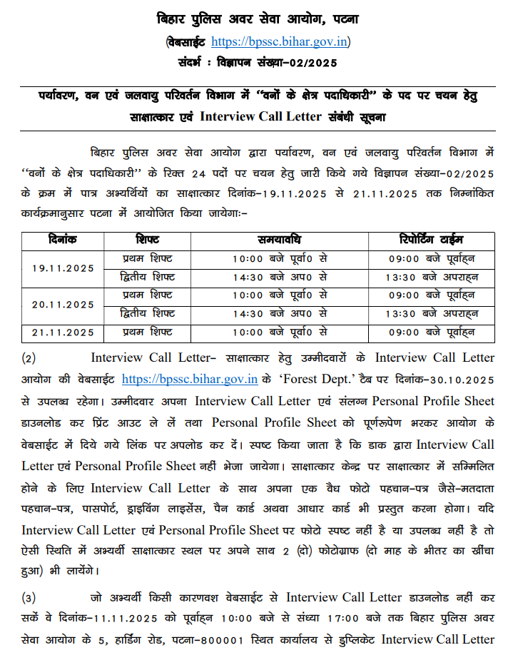 Download BPSSC Forest Range Officer Interview Call Letter 2025