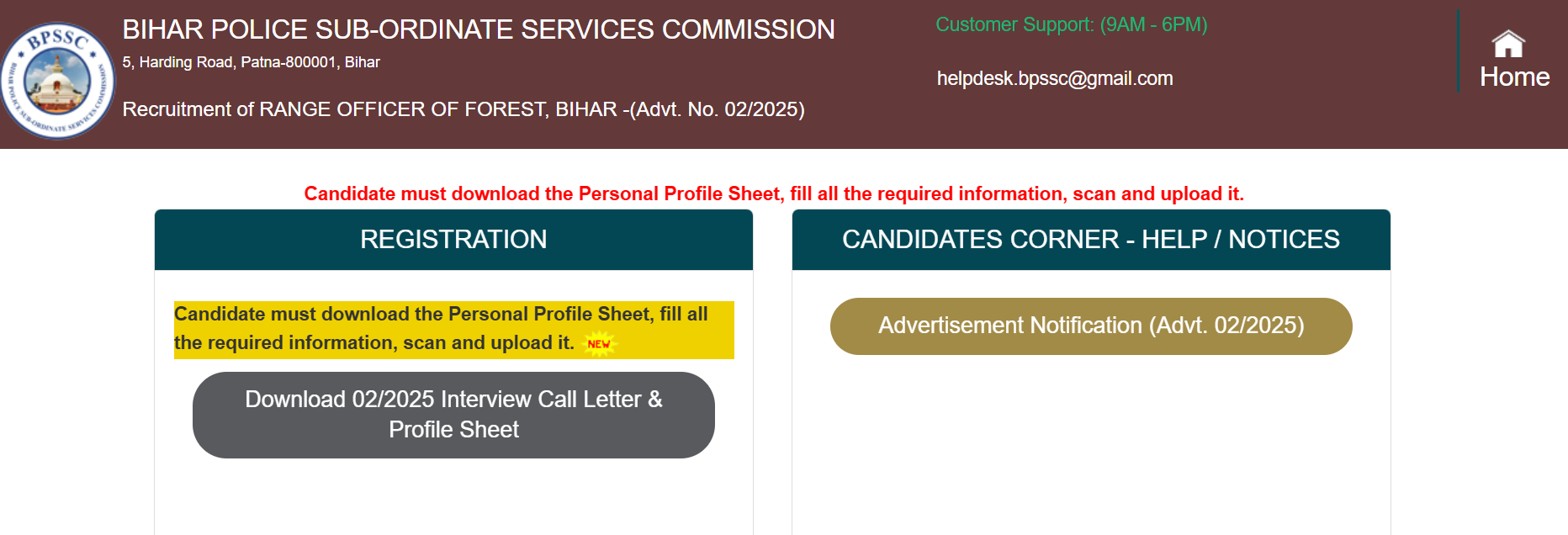 Candidates can download the Interview Call Letter along with the Personal Profile Sheet directly from the BPSSC official website. The Commission has clearly stated that the Interview Call Letter and the attached Personal Profile Sheet will not be sent by post, so candidates must download them online on their own.