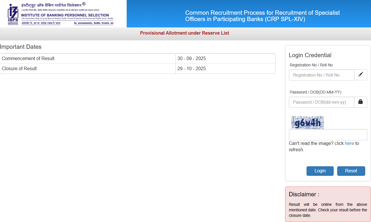 Provisional Allotment Under the IBPS AFO Reserve List(Second) | 30 September 2025 |