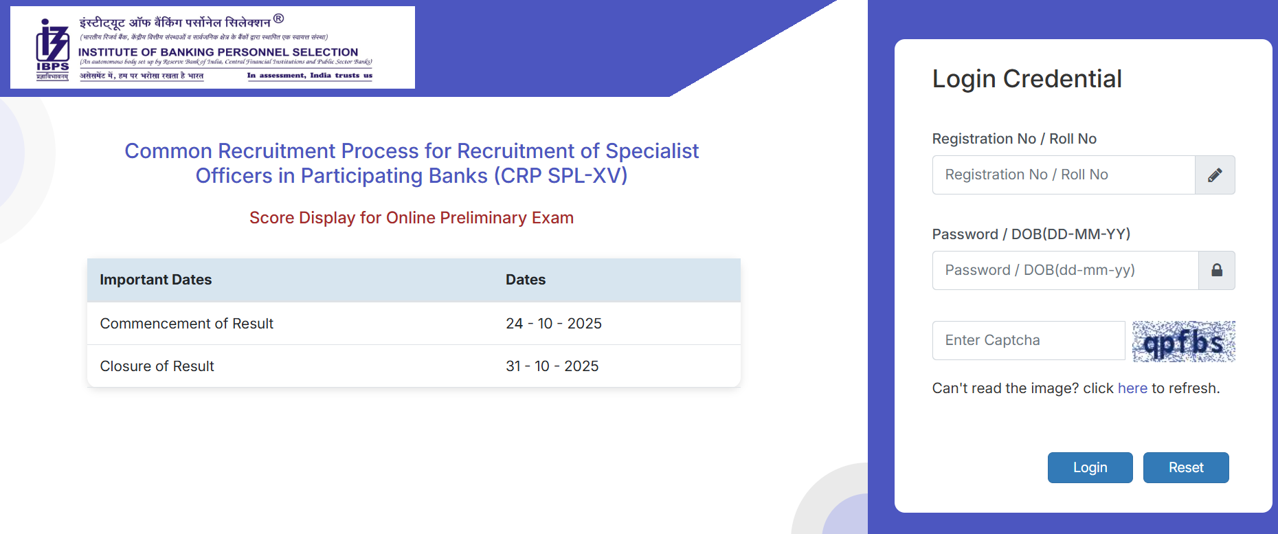 - Look for the option “Click Here to View Scores of Candidates that appeared for IBPS CRP SPL-XV” and click on it.