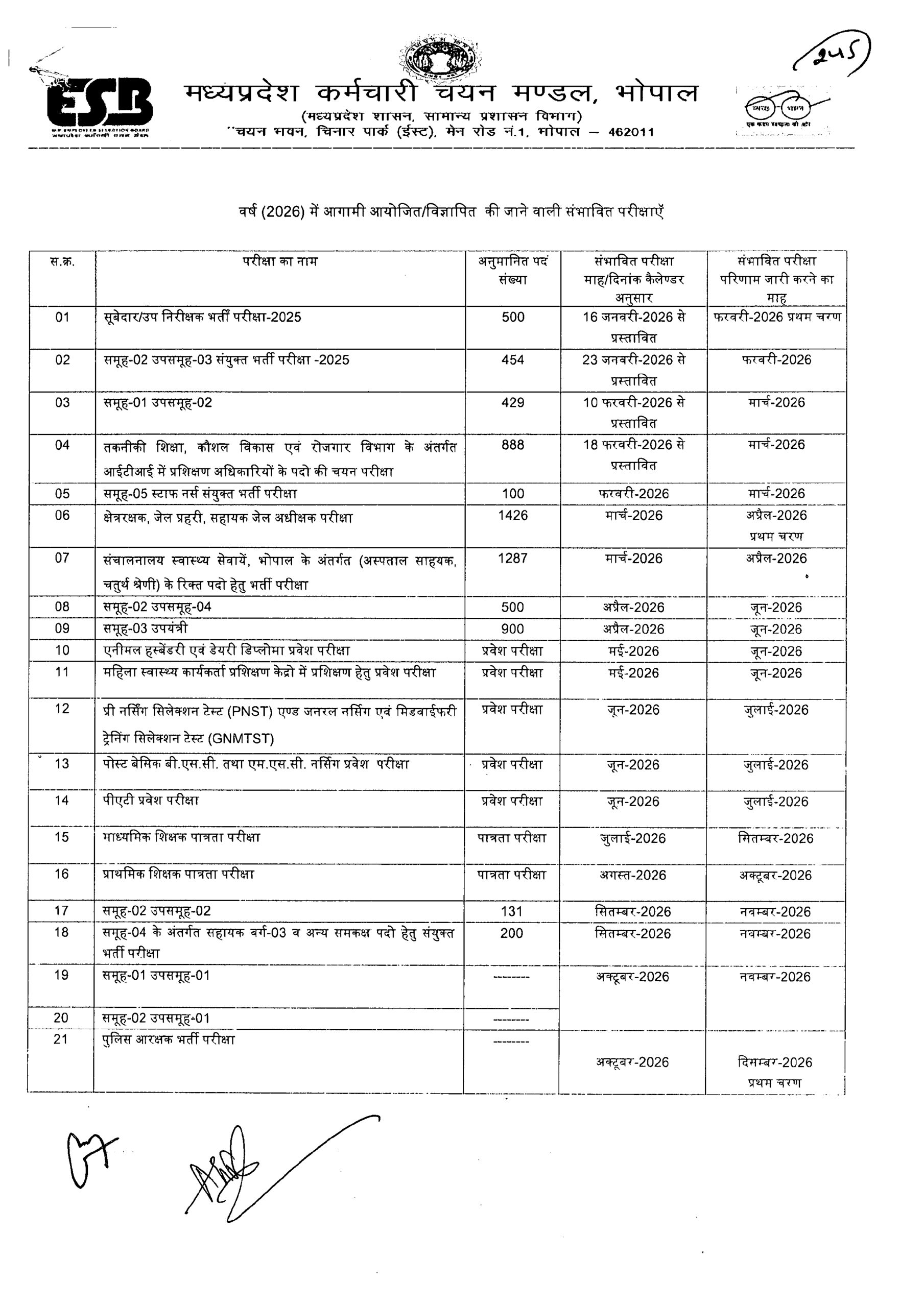 The Madhya Pradesh Employees Selection Board (MPESB) has released its official exam calendar for 2026, which indicates that the MPESB Staff Nurse Exam 2026 is tentatively scheduled to be held in February 2026. Candidates planning to appear for the exam are advised to start their preparation now. The official calendar regarding the exam schedule has been provided below.