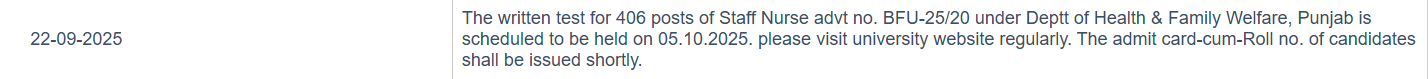 BFUHS Staff Nurse Exam Date | 5 October 2025 |