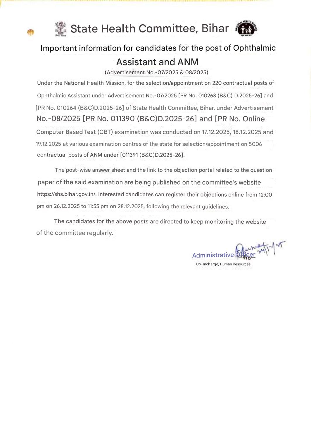 Along with the release of the response sheet, the State Health Society has also activated the objection window on its official website, shs.bihar.gov.in. The window is currently open and will remain available until 28 December 2025 (11:55 PM). As only two days are available, candidates are advised to submit their objections at the earliest. The direct link to raise objections is provided in this section.
