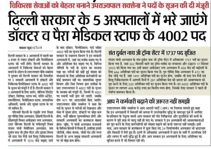 These vacancies are linked to increased bed capacity and new medical infrastructure in Delhi.