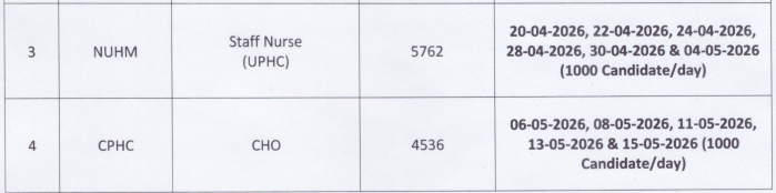 The National Urban Health Mission (NUHM) released an official notification on its website on 14 March 2026, detailing the document verification (DV) schedule and process for the West Bengal Staff Nurse and West Bengal CHO recruitments. Candidates can refer to a quick overview of the DV dates and related details in the table below for easy reference.