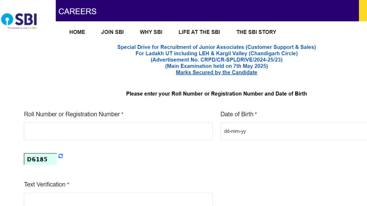 The SBI JA Marks 2025 for Ladakh UT are now available for download on the official State Bank of India careers website. Candidates who appeared for the Junior Associate exam under special drive for ladakh UT can check their individual marks and performance details by accessing the official link. To download the scorecard, candidates must click on the below link.