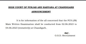 Punjab PCS Mains Exam Date 2023 Out: The High Court of Punjab and Haryana at Chandigarh issued a notice regarding Punjab PCS Mains Exam Date 2023. Punjab and Haryana High Court released the Exam date of Punjab PCS Mains. The Punjab PCS (JB) Main Written Examination shall be conducted from 02 June 2023 to 04 June 2023 (tentatively) in Chandigarh.