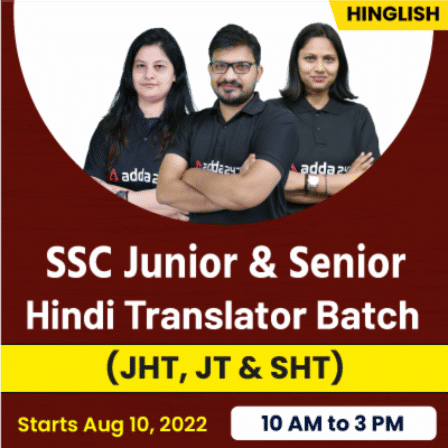 SSC Junior Hindi Translator Batch (JHT, JT & SHT) | Hinglish | Live Classes By Adda247 Batch Start: 10-Aug-2022 Time: 10:00 AM to 3:00PM Class Days: Mon-Fri