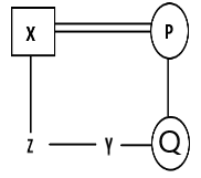1. X is the father of Y and Z.2. P is the mother of Q.3. Q is the sister of Y.What is the relation between X and P?