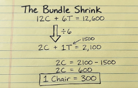 Total cost of chairs = 12,600 − 9,000 = Rs. 3,600