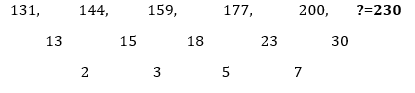 131, 144, 159, 177, 200, ?The pattern of the series: