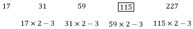 17, 31, 59, ?, 227