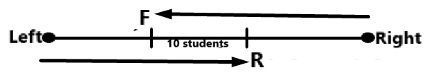 24 students are sitting in a row. F is 17th from the right end and R is 19th from the left end. How many students are between F and R?