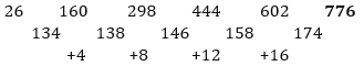 26, 160, 298, 444, 602, ?