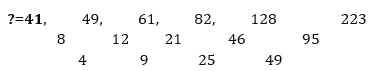 ?, 49, 61, 82, 128, 223Pattern of series –
