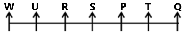 7 boys P, Q, R, S, T, U and W are sitting in a row facing north (not necessarily in the same order). No one is to the right of Q. R is fourth to the left of Q. W is second to the left of R. T is fourth to the right of U. P is not second to the right of U. Who is sitting to the immediate right of P?