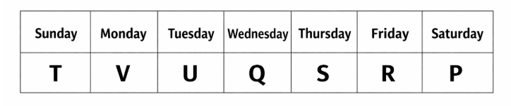 T selected Sunday, U said that he will select the day immediately before Q.