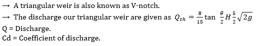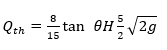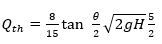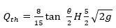 A 90° triangular weir is used to measure the discharge (Q) of a canal with the head of water H. The theoretical discharge is computed by: