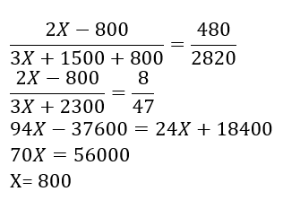 = 3X+1500 : 2X-800 : 800