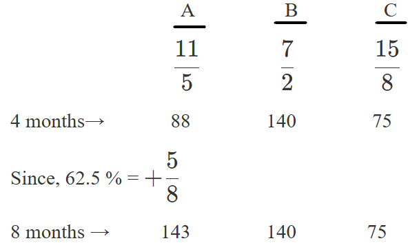A raises her share of investment by 62.5% after 4 months.