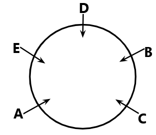 A, B, C, D, E, F, G and H are sitting around a circle at an equal distance facing the centre of the circle.