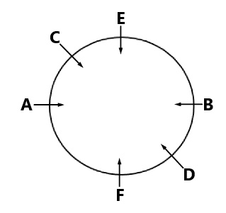 A, B, C, D, E and F are sitting in a circle facing towards centre. D is between F and B. A is second to the left of D and second to the right of E . Who is facing towards D?