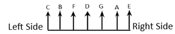 A, B, C, D, E,F and G are seven students standing in a row facing North. D stands at the exact centre of the row. A stands second from the right end of the row, B stands second to the left of D. G stands exactly between D and A. F stands third from the left end of the row, C is the immediate neighbour of B . Who stands fifth from the left end of the row?
