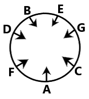 A, B, C, D, E, F and G are sitting around a circular table facing the centre (but not necessarily in the same order).