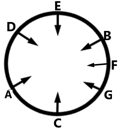 A, B, C, D, E, F and G are sitting around a circular table facing the centre. Only one person sits between C and F when counted from the right of C. Only one person sits between F and E. Only one person sits between C and D. Only two people sit between G and E. Only one person sits between B and D. How many people sit between D and F when counted from the right of F?