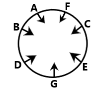Eight friends A, B, C, D, E, F, G and H are sitting around a circle, facing at the centre. 'C' is between 'E' and 'F'. 'G' is the neighbour of 'E'. 'F' is on the immediate right of 'B'. 'H' is on the immediate left of 'A'. 'H' is not the neighbour of 'D' or 'E'.