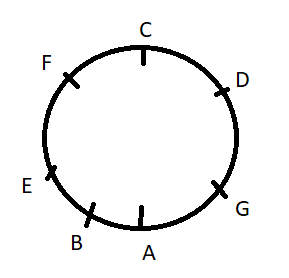 A, B, C, D, E, F and G sit around a circular table facing center.