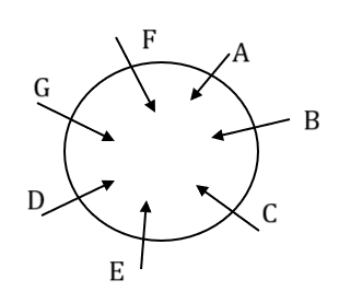 A, B, C, D, E, F and G sit around a circular table facing centre. F sits to the immediate left of G. E sits to the immediate left of C. C sits second to the left of A. B sits third to the left of G. How many people sit between F and E when counted from the left of E?