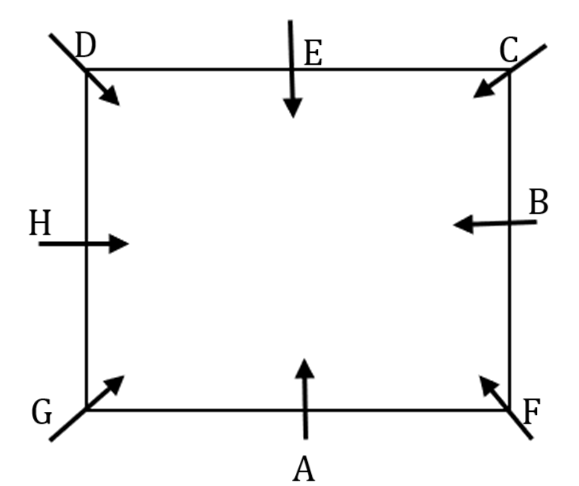 Eight friends J, K, L, M, P, Q, R and S are sitting around a square table facing the centre of the table. Some of them are sitting at the corners while some are sitting at the exact middle of the sides.