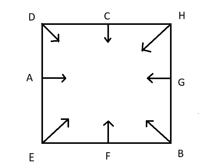 A, B, C, D, E, F, G and H are sitting around a square table facing the centre of the table
