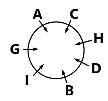 A, B, C, D, G, H, and I are sitting around a circular table facing the centre. Only two people sit between D and A when counted from the left of A. H sits third to the left of G. I sits to the immediate right of G. I sits second to the left of D. B is not an immediate neighbor of H. Who sits third to the right of C?