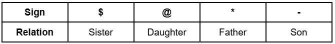 'P % Q' means 'P' is the son of 'Q'