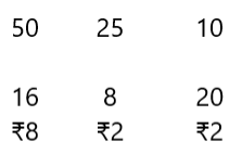 The ratio of the number of 50 Paisa, 25 Paisa, and 10 Paisa coins is 16 : 8 : 20
