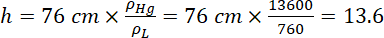A barometer is constructed using a liquid (density =760kg/m³). What would be the height of the liquid column, when a mercury barometer reads 76cm ?