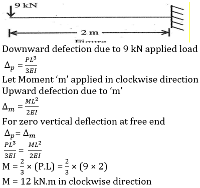 A cantilever beam is shown in the figure. The moment to be applied at free end for zero vertical deflection at that point is -