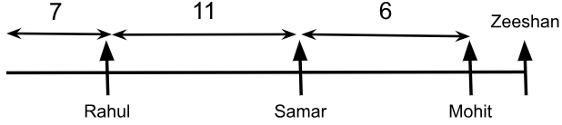 - Mohit is to the immediate left of Zeeshan, who is sitting at the extreme right end.