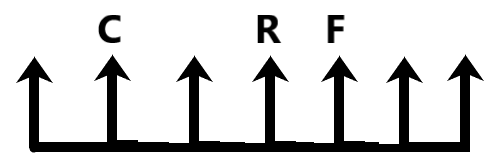 Only one person is sitting between C and R.