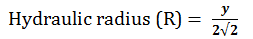Hydraulic radius is half of the depth of flow. ( R= y/ 2)