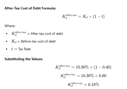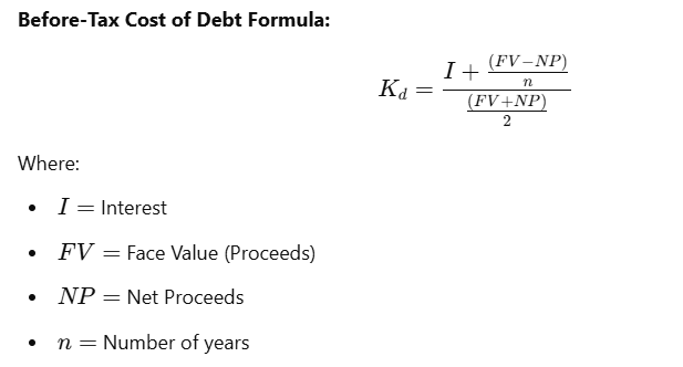 The cost of debt capital (Kd) is calculated using: