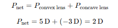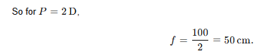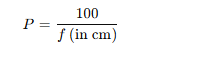 Now, the relationship between power P (in diopters) and focal length f (in meters) is: