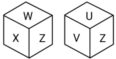 Logic: As Z is the common face on both the dice, keeping it constant and then rotating in clockwise/anti clockwise direction, we get the faces opposite to each other: