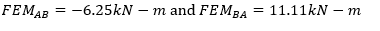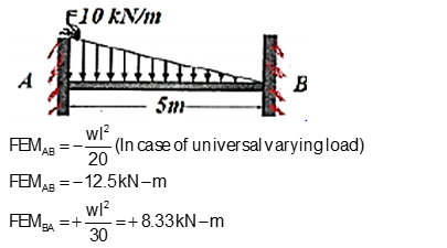 A fixed beam AB is subjected to a uniformly varying load as shown in the figure. Find the fixed end moments.