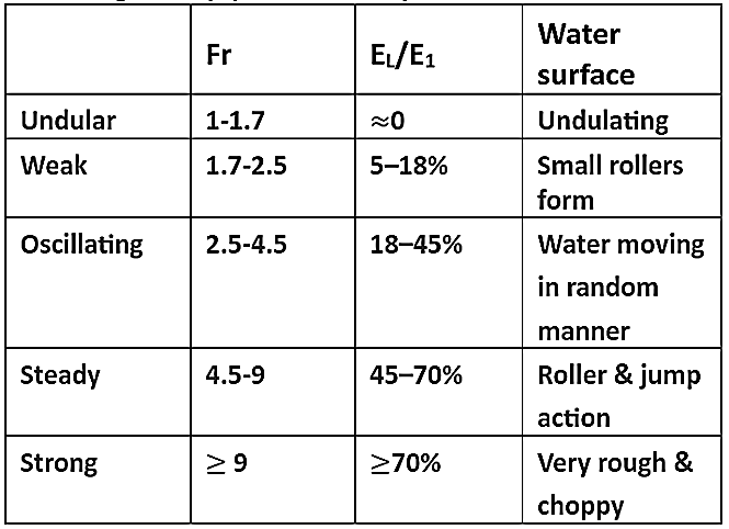 Correct option is C Types of Jump : - It depends on the Froude's number of the incoming flow (upstream end).