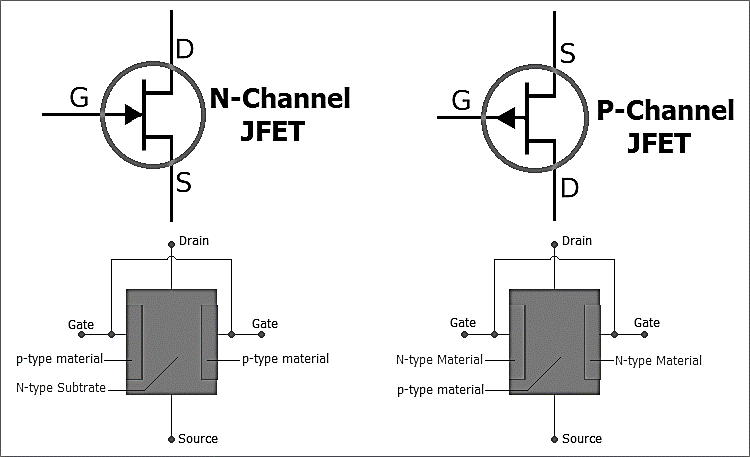 unipolar device because its operation is based on the flow of a single type of charge carrier, either electrons (in an N-channel JFET) or holes (in a P-channel JFET). The term "unipolar" refers to the fact that only one type of charge carrier is involved in the conduction process.
