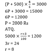 Rs 3000 = (P + 500) + [(P + 500) × 5 × 4]/100