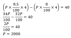 A man invested the same amount in two different schemes, i.e., A and B. He invested in schemes A and B at 8.5% p.a. and 8% p.a., respectively, for four years. If the difference between the simple interest received from schemes A and B is Rs 40, then find the amount he invested in each scheme.